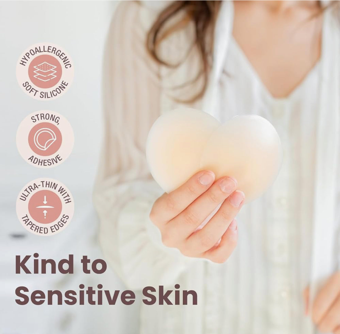 Ditch the discomfort of bras with these silicone nipple covers. Designed to smooth and conceal, they let you rock backless dresses, sheer tops, or swimsuits with confidence. Their strong adhesive keeps them firmly in place for up to 12 hours, no matter how intense your day or night gets. Lightweight and virtually invisible, they fit all cup sizes so you’ll forget you’re even wearing them. Easy to care for—just hand wash and air dry—these covers are your secret weapon for fearless, bra-free style.